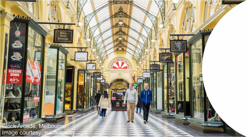 "Block Arcade is a spectacular heritage shopping arcade located in the centre of the Melbourne CBD, linking Collins Street and Elizabeth Street. The tourist icon is highly regarded for its shopping but boasts exquisite architecture & interior decoration"