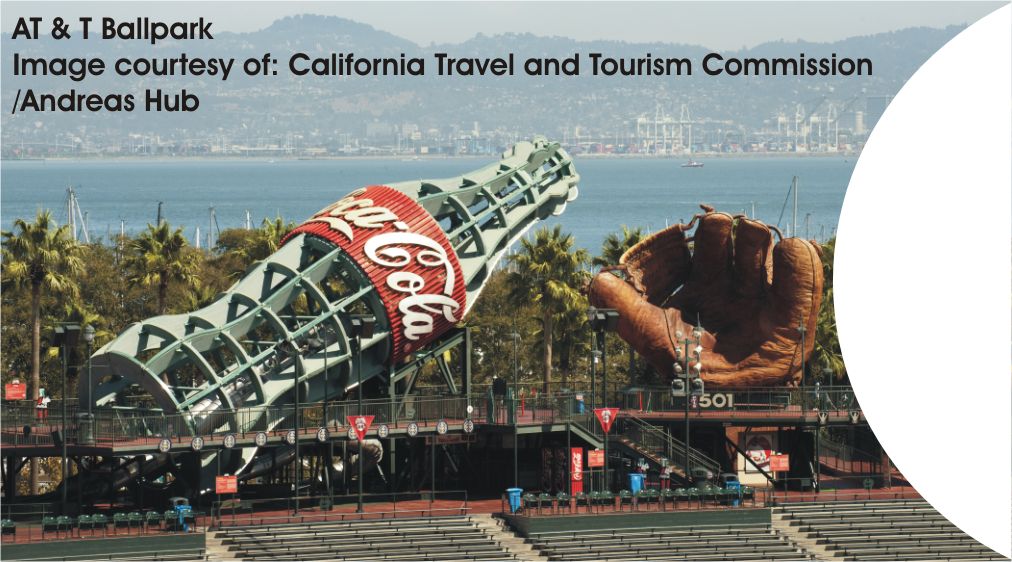 "AT&T Park is a Major League Baseball ballpark located in the SoMa neighbourhood of San Francisco and is home to the 2012 MLB World champion San Francisco Giants. An 80 foot coke bottle and giant baseball glove are behind the bleachers."