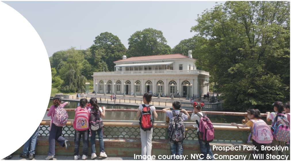 "Prospect Park, a Brooklyn gem, is a sprawling urban oasis that captivates visitors with its lush greenery and diverse recreational offerings. Designed by Frederick Law Olmsted and Calvert Vaux, the park features serene lakes, meadows, and the iconic Grand Army Plaza. Cyclists, joggers, and picnickers flock to its winding paths, while the Prospect Park Zoo and the Brooklyn Botanic Garden add to its vibrant allure."